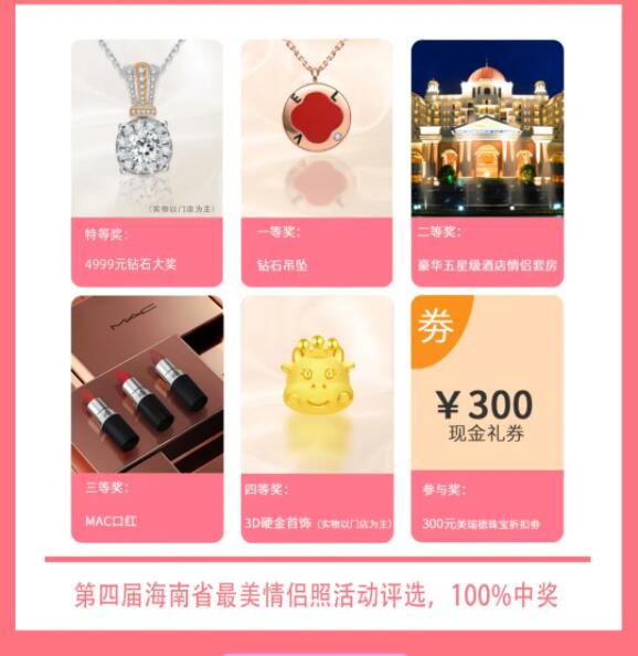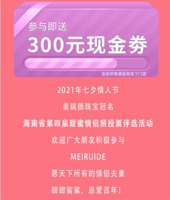 秀情侣照赢钻石大奖!美瑞德珠宝海南省第四届甜蜜情侣照投票评选活动